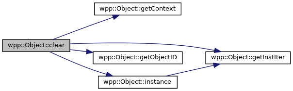 Here is the call graph for this function:| void wpp::Object::clear | ( | ) |