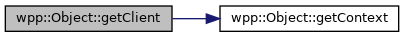Here is the caller graph for this function:| WppClient & wpp::Object::getClient | ( | ) |