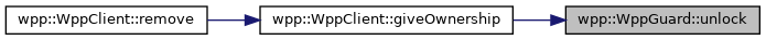 Here is the caller graph for this function:| void wpp::WppGuard::unlock | ( | ) |