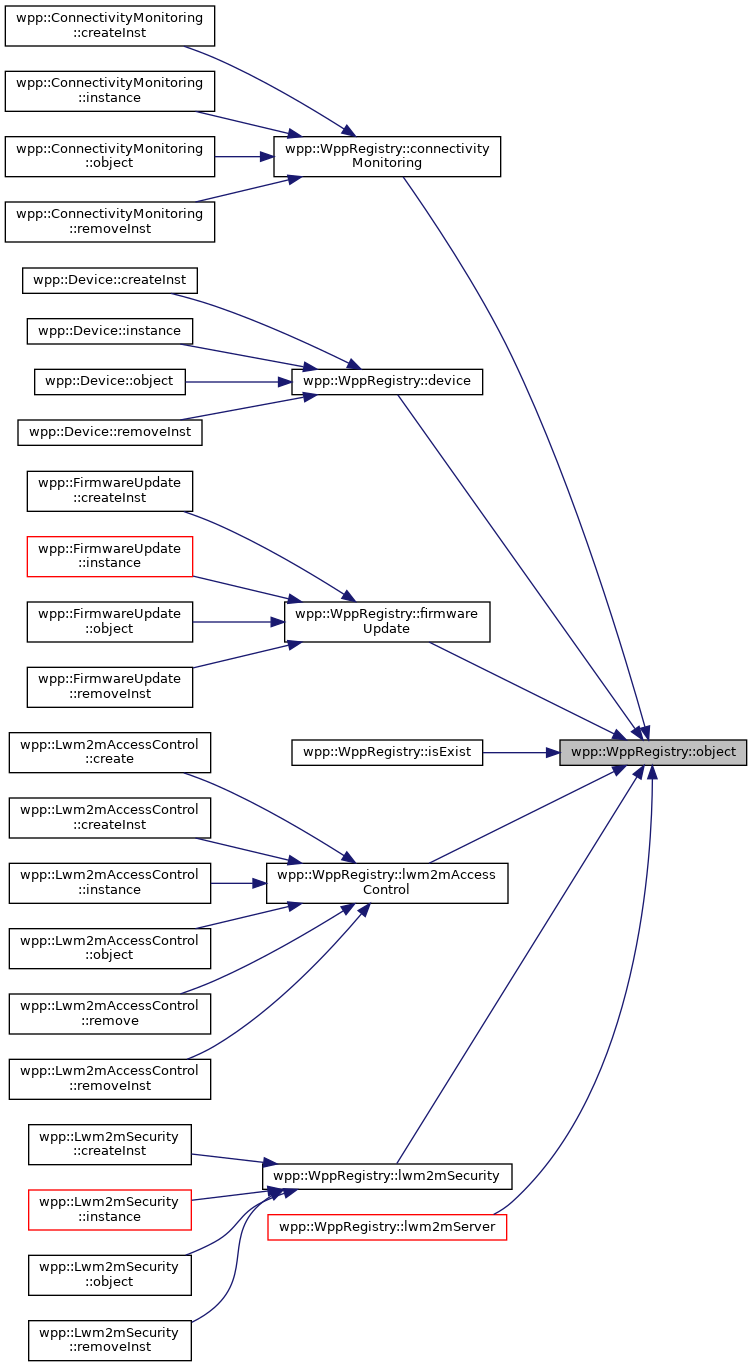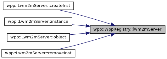 Here is the caller graph for this function:| Object & wpp::WppRegistry::lwm2mServer | ( | ) |